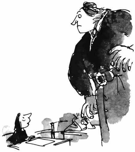 Матильда села за парту. Транчбуль села за свой стол — впервые за весь урок. Затем она протянула руку и взяла графин. Держась за графин, но не поднимая его, она сказала: