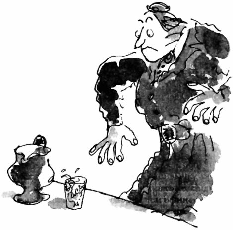 Транчбуль тем временем взяла голубой графин и налила в стакан воды. И неожиданно вместе с водой прямо в стакан нырнул длинный скользкий тритон!