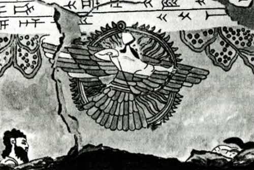 Из нее появился юноша, несший семя, и поместил его в лоно матери. Фрагменты этого древнего предания сохранились в клинописных текстах, записанных во времена царя Дария Великого (549–486 гг. до н. э.), его сына Ксеркса (485–465 гг. до н. э.) и внука Артаксеркса (464–424 гг. до н. э.). Наивысшим объектом поклонения в зороастризме является бог Ахура Мазда. Он изображается с распростертыми крыльями и солнечным диском вокруг головы. Сложно не заметить сходство с египетским крылатым солнечным диском.
