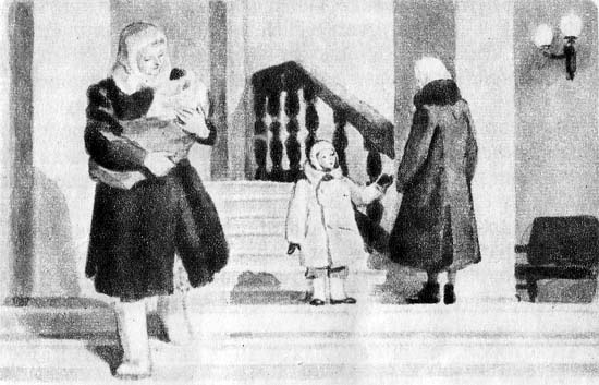 И бабушка, улыбаясь, посторонилась и пропустила на лестницу женщину с грудным ребёнком на руках. И вот бабушка и внук снова вышли на улицу.