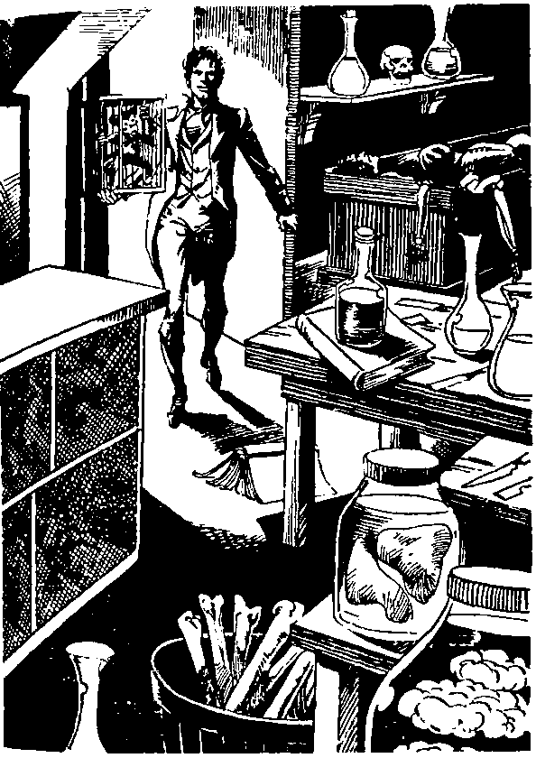 Я опустил глаза на распростертое передо мною безжизненное существо и понял, что вот сейчас я дам ему жизнь. Свеча, горевшая в моей лаборатории, почти совсем догорела, но было довольно света, чтобы я мог прикоснуться своим инструментом к распростертому телу. Это прикосновение вызвало искру, искра пронизала тело — оживила его!