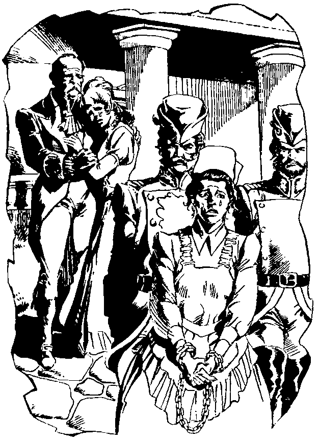 Она сидела на соломе у себя в камере. Руки были связаны, голову она свесила на колени. Увидев нас, она бросилась к ногам Элизабет и горько заплакала.