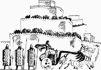 Настал день прощания. В последний раз Сингамиль вместе с Гамиль-Ададом прошелся по улицам Вавилона. Он полюбовался крылатыми быками, грозно стоящими у входа во дворец повелителя. Долго стоял у Зиккурата, столь богато украшенного, что Зиккурат Ура показался ему убогим. Ему повезло. В этот час заката по главной широкой улице Вавилона пронеслась позолоченная колесница Хаммурапи. По обе стороны улицы стояли воины со сверкающими в лучах заходящего солнца бронзовыми щитами. В правой руке каждого воина – копье. Сингамиль обратил внимание на прекрасные сады, зеленеющие на крышах дворцов и храмов. У крепостной стены дворца он увидел рабов, которые крутили гигантское колесо, несущее кожаные мешки воды из бассейна для полива сада. Эламит объяснил Сингамилю, что колесо должно крутиться круглые сутки. И круглые сутки здесь трудятся рабы.