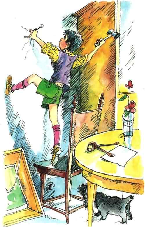Дело было так. Сначала я начал разгибать гвоздь в кухне на кафельном полу. А он не разгибался. Я хлопнул по нему молотком со всей силы, и три кафельных плитки разлетелись вдребезги. Целый час я возился с гвоздём. Мне захотелось есть. Я поставил на плиту варить картошку и обнаружил пропажу гвоздя. Я сбегал на стройку и притащил пять плиток и цемент. Я взялся за работу, но, как ни старался, мои плитки никак не укладывались вровень с другими. Две проваливались очень глубоко, а одна возвышалась над всеми. Я хлопнул по двум плиткам молотком, и они разлетелись вдребезги. Я вставил на их место запасные, но они возвышались над другими, и я не решался хлопнуть по ним молотком. Стал подчищать ножичком пол, после чего обнаружил, что и теперь они проваливаются. Я густо намазал их цементом, но теперь они опять возвышались, как я ни нажимал на них. Я хлопнул по ним молотком, и они разлетелись вдребезги.