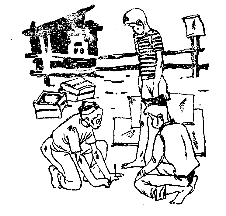 Все молча принялись за дело. Мы раскроили газету, склеили пакет и насыпали в него золу. Конец пакета завязали суровой ниткой и привязали к нему шпагат.