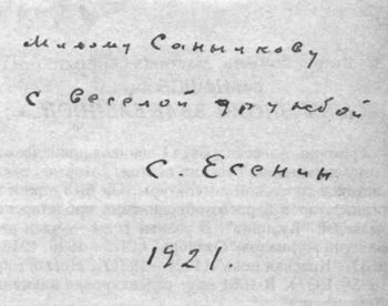 Вот книжка Сергея Есенина «Пугачов» с дарственной надписью: