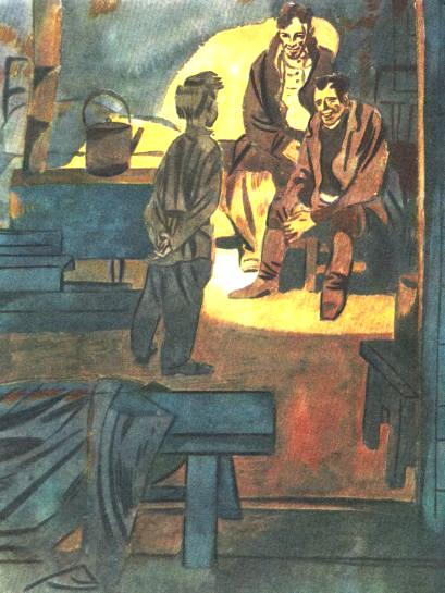 На другой день отец собирался на работу в типографию. Витя укорительно посмотрел на него.