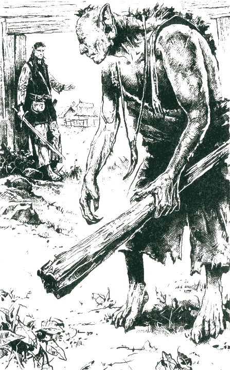 Из кустов выбирается здоровенный тролль. Основной недостаток троллей – медлительность, он только сейчас дотопал до поля боя. В руках гигант сжимает обломок скалы размером с хорошего барана.