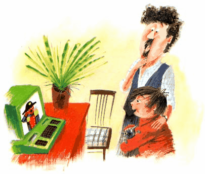 — Вот, пожалуйста, персональный компьютер, — сказал папа и бережно погладил коробочку с кнопками. — Он всё что хочешь может делать. И сложные задачки решать, и разными механизмами управлять. А утром может тебя разбудить получше будильника.