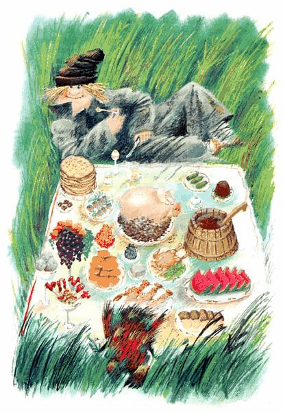 — Это вам от меня. — Кадабра протянул корзину Кашле. — Тут и репа, и морковь, и редиска с огурцами, крынка молока да ягоды разные. Всё своё, деревенское. Кушайте на здоровье.