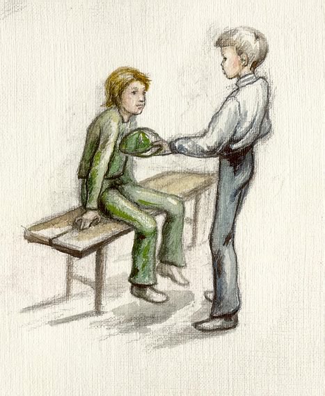 Радостно хохоча, мы приземлились на лавочку и пытались отдышаться. Я высунул язык и наклонился низко к земле. Вдруг меня кто-то несмело тронул за плечо.
