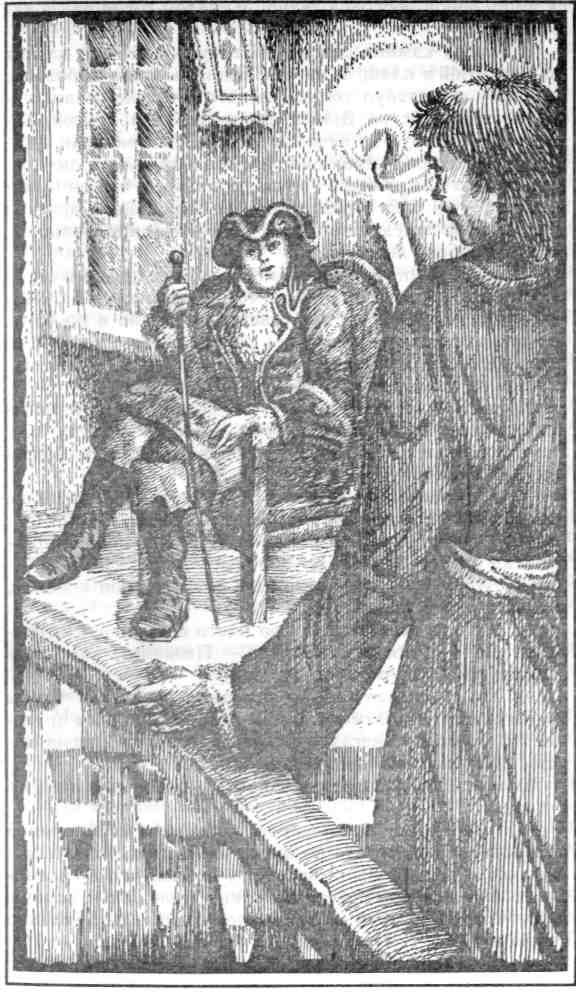 У самого камина сидело двое мужчин. Один из них был закутан в плащ, и на нем были высокие дорожные сапоги, — я взглянул только на него и тотчас узнал злого гения семейства Дьюри-Деррисдир, — а другой, сидевший по правую сторону от камина, был закутан в какую-то материю и имел вид запеленатой мумии; по цвету лица его можно было тотчас догадаться, что он чужестранец, — он был гораздо смуглее европейцев, фигура у него была тщедушная, лоб необыкновенно большой, а глаза глубоко впалые.