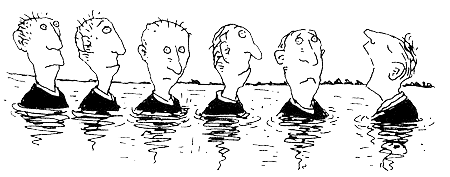 Шестерых человек, отправившихся в плавание на никудышной лодке.