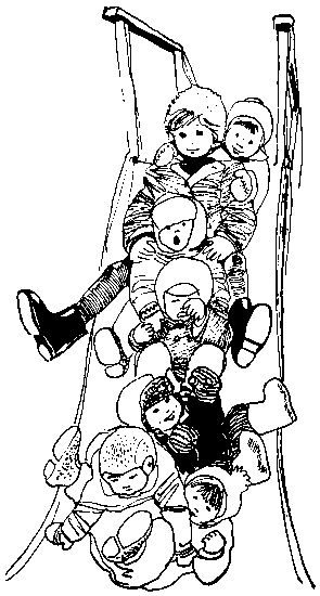 Катя предложила кататься вагончиками. Все цеплялись друг за друга и ехали вниз. Внизу у конца ледяной дорожки получалась куча мала. Когда Катя в третий раз вылезла из этой кучи вся белая, в ледяной трухе, ее остановила женщина в красивой шубе.