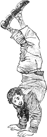 Вдруг пионервожатый отошел от стола, остановился посреди класса и сделал стойку на руках. Он стоял так, на руках, долго. Ноги у него покачивались вперед-назад, и сам он изогнул шею и смотрел в потолок.