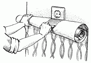 Можно, конечно же, сделать это заранее, до того как полотнища будут промазаны слоем клейстера, тщательно вымерив места расположения этих отверстий и затем наметив их на внутренней стороне обоев простым карандашом. Однако в данном случае нет полной гарантии, что отверстия в обоях идеально совпадут с розетками на стене.