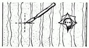 Для этого следует наклеить полотнище на стену так, как это указано выше, затем, определив расположение отверстий для розеток и выключателей на ощупь, острым ножом со сменными лезвиями сделать аккуратные разрезы в виде креста таким образом, как это показано на рисунке 10.
