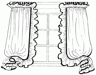 Рис. 43. Кухонное окно, драпированное занавесями с оборками.