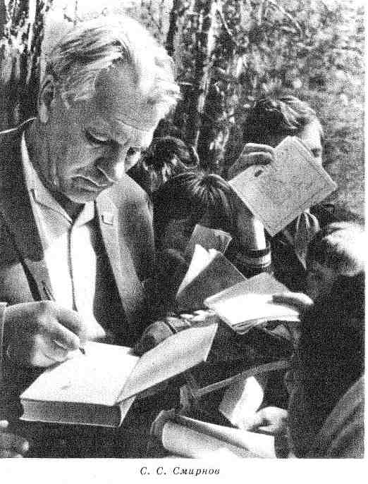 Легенда захватила Смирнова. И началась труднейшая и упорнейшая работа. Нити поисков повели его в новые го рода, в другие республики. Один факт объяснял целую серию непонятных вопросов, отысканный герой называл новые имена, выяснялись судьбы десятков, сотен людей, и подвиг раскрывался в таком невыразимом величии, что нельзя было утерять в рассказе ни одной, пусть даже малой подробности. И материал определил характер всех его книг, в которых рассказано все по порядку именно так, как открывалось это в работе ему самому — Сергею Сергеевичу Смирнову. Но это определилось не сразу.