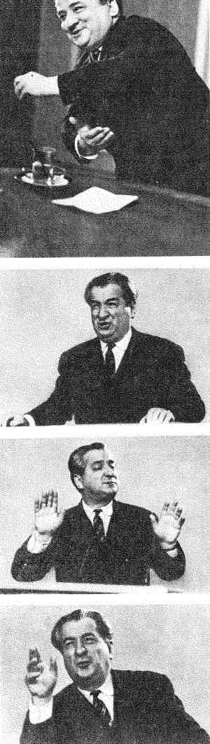 Но для того, чтобы говорить перед аудиторией, нужно обладать очень важным качеством — умением публично мыслить. Это сложно, потому что перед большой или перед новой аудиторией выступающий часто волнуется, а для того, чтобы формулировать мысли в процессе речи, нужно владеть собой, уметь сосредоточиться, подчинить свое внимание главному, помнить, что ты работаешь. Зная заранее, о чем ты хочешь сказать, надо говорить свободно, не беспокоясь о том, получится ли стройная фраза, и не пытаться произнести текст, написанный и заученный дома. Если же не облекать мысль в живую фразу, рождающуюся тут же, в процессе речи, контакта с аудиторией не будет. В этом случае весь посыл выступающего будет обращен не вперед — к аудитории, а назад — к шпаргалке. И все его усилия направлены на то, чтобы воспроизвести заранее заготовленный текст. Но при этом работает не мысль, а память. Фразы воспроизводят письменные обороты, интонации становятся однообразными, неестественными, речь — похожей на диктовку или на ответы экзаменующегося, который отвечает не мысля, а припоминая заученный текст. Если же при этом перед выступающим нет кафедры или стола, на который можно положить бумажку, то весь он, по образному выражению одного музыковеда, обретает такой вид, словно забил бумажку между лобной костью и полушариями мозга и хочет подсмотреть туда, отчего лицо его принимает выражение, несколько обращенное внутрь себя: «Ах, ах, что будет, если я забыл?»