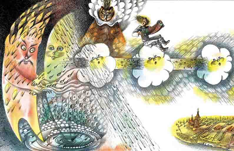 С невестиной стороны пришел старший братец Густой Туман, средний брат Косой Дождь и младшая сестричка Воды — Ясноглазая Роса.