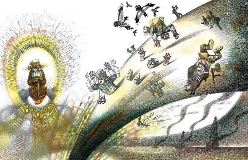 — Доброе дело задумали! Вижу, помочь тебе требуется. Знаю я одно заповедное место, где нефти сколько хочешь. Идем, укажу…