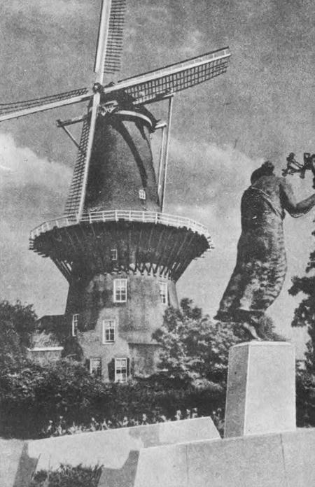 Какие-то господа расселись за столиками под сенью крыльев, а «мельничиха» в накрахмаленном чепце выплывает из дверей с подносом на поднятой руке. Тут же, конечно, пасутся черно-белые коровы, без которых положительно невозможно представить себе голландские луга.