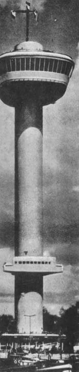 С высоты птичьего полета и мы любовались чудо-портом. За нашей спиной седой моряк посасывал трубку. Светились глазки приборов. Что-то загадочно пощелкивало. На мгновение мы почувствовали себя если и не капитанами судна-гиганта, только что ошвартовавшегося в роттердамской гавани, то, во всяком случае, людьми, не чуждыми морю. Спасибо строителям «Евромаста», что они не ограничились сооружением на башне ресторана, а подняли сюда корабельную рубку!