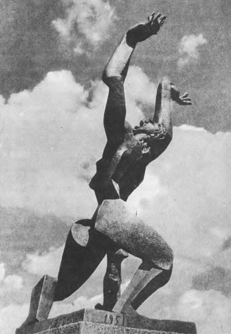 Его создал французский скульптор Осип Цадкин. Памятник называется «Растерзанный город». Трагически изломанная человеческая фигура в ужасе вздымает руки, как бы защищаясь от злого неба. У нее вырвана грудная клетка. Она кричит в исступленной немоте: не забывайте о том, что было! Помните о трагедиях городов, у которых вырвали сердце! Помните о погибших среди развалин, о тех, чья жизнь оборвалась внезапно и страшно!