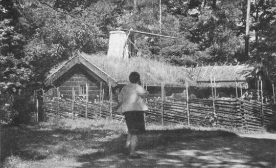 Странное чувство охватило меня, когда я отправился бродить по аллеям Скансена. Прямо с шумных улиц шведской столицы, с потоками машин и пешеходов, с пестрым мельканием реклам, я перенесся в тихую шведскую деревню. Под сенью дубов стоял деревянный дом, окрашенный в теплый красный цвет. Ветряная мельница простерла крылья над ближайшим пригорком. Ветхий сарай, словно конфузясь своей бедности, спрятался в тень, и воробьи весело чирикали на его соломенной, почерневшей от непогоды крыше.