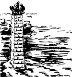 Недалеко от устья на реке Онгерман-Эльв, посередине самого быстротока, где вода бурлит порогами, высоко поднят столб из грубо отесанных глыб гранита. На его вершине — фигуры троих людей. Они в самых неустойчивых и рискованных позах работают на груде бревен, торчком нагроможденных водопадом. Их мускулы напряжены, лица серьезны. Короткими баграми они вцепились в бревно, вырываемое потоком.