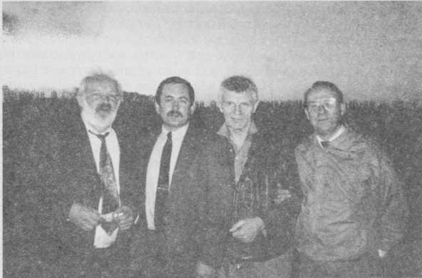 Участники юбилейного Пленума СП России. Слева направо: профессор Володин, поэт В. Серков, киноактер Ю. Назаров, прозаик В. Ротов. 1995 г.