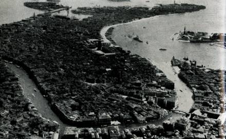 Дворец Дожей, Пьяццетта с ее колоннами и Библиотекой, Моло и Рива дельи Скьявони образуют парадный фасад города, открывающийся прибывшему морем путешественнику, перед которым постепенно проступает сквозь влажную дымку долгожданная Венеция, плывущая среди волн как гигантский сказочный корабль.