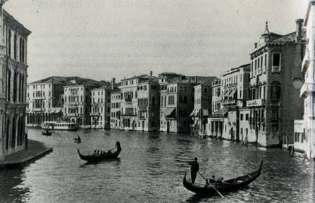 Путешествуя по Большому каналу, можно проследить все этапы развития типа венецианского дворца — «каза венециана», от построек византийского характера (XII–XIII вв.) простых и строгих форм с неизменным портиком, украшенным аркадами, до блистательных палаццо первой половины XV века, так называемого стиля венецианской готики, купающих в водах канала отражения своих мраморных кружев; от дворцов раннеренессансного стиля (вторая половина XV в.), сохраняющих элементы готического декора, но уже более строгих уравновешенных форм, до монументальных, сдержанно нарядных, величественных зданий Высокого Возрождения (XVI в.); от тяжеловесных, перегруженных декором дворцов XVII века до палаццо XVIII столетия простых классицизирующих форм. Эти здания различны по стилю, но всем им свойственна одна общая особенность: они не замкнуты, не отделены своими стенами от внешнего мира, — как было в других городах Италии до XVI века, — напротив, они открыты, приветливы, «распахнуты» навстречу человеку. На протяжении нескольких веков воды Большого канала неумолимо подтачивали фундаменты дворцов, подобно тому, как волны исторических событий постепенно разрушали могущество Венецианской республики. Ныне большинство дворцов покинуто их прежними владельцами. Часть их превращена в дорогие отели, другие перешли в собственность государства, а некоторые были проданы и обрели новых владельцев, фамилии которых не всегда звучат по-итальянски.