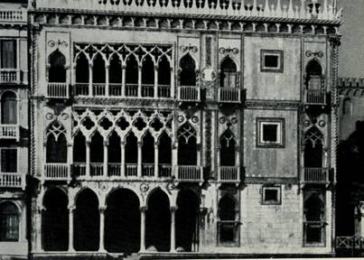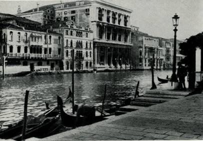 От моста Риальто начинается менее фешенебельная часть Большого канала. Но и здесь много прославленных величественных дворцов. Один из самых старых — Ка'да Мосто XIII в. находится недалеко от Риальто. Его лоджия во втором этаже украшена византийского типа аркадой. 18*Фасад декорирован скульптурой и мраморной инкрустацией. В этом доме жил путешественник Альвизе да Мосто, исследователь берегов Африки, открывший острова Зеленого Мыса. Уже несколько столетий во дворце помещается гостиница «Белый лев», которая славится тем, что в ней останавливались австрийский император Иосиф II и русский цесаревич Павел с супругой.
