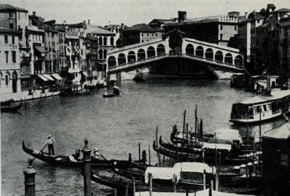 Мост Риальто органически вошел в пейзаж Венеции, он виден издалека и выделяется на фоне канала и неба внушительным силуэтом. Его несколько тяжелые формы вполне оправданы назначением: связать воедино две части города. Когда смотришь на мост с канала, как будто чувствуешь, каким мощным усилием «держит» он готовые уплыть в разные стороны берега, властно приковывая их к месту.