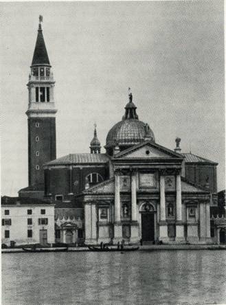 Многие здания на острове носят отпечаток гения Андреа Палладио. Здесь находится одно из его лучших творений — церковь Сан Джорджо Маджоре. Она превосходно поставлена и удачно дополняет центральный ансамбль Венеции. На церковь Сан Джорджо открывается вид с Пьяццетты и от колокольни Сан Марко. Она приветливо встречает гондолы и катера, выходящие из Большого канала в Бачино ди Сан Марко, и большие морские суда, идущие в канал Джудекка. Трудно было бы найти более подходящее место для сооружения, долженствующего быть узловым пунктом в «водно-архитектурном» ансамбле города. Вместе с тем перед зодчим стояла ответственная задача создать архитектурное произведение, достойное занять такое место. Андреа Палладио прекрасно справился с этой задачей. Быть может, именно поэтому Сан Джорджо не производит впечатления холодности и «невенецианской» строгости церкви Реденторе, хотя оба сооружения чрезвычайно близки по замыслу и архитектурному оформлению. Здание создает ощущение совершенства во всем: в прекрасно найденных пропорциях, в изысканной простоте и уравновешенности масс, в сдержанном и деликатном использовании декоративного убранства. Центральная часть фасада, более высокая, чем боковые, решена в виде портика с четырьмя большими колоннами и треугольным фронтоном над ними. В нишах — статуи св. Георгия и св. Стефана — работы Джулио дель Моро (XVI в.). На тимпане скульптура более позднего времени (XVIII в.). В плане здание имеет форму латинского креста. Перекрестие покрыто куполом. Своды опираются на большие столбы — пилоны, украшенные пилястрами и полуколоннами: ясная, гармоничная архитектура.