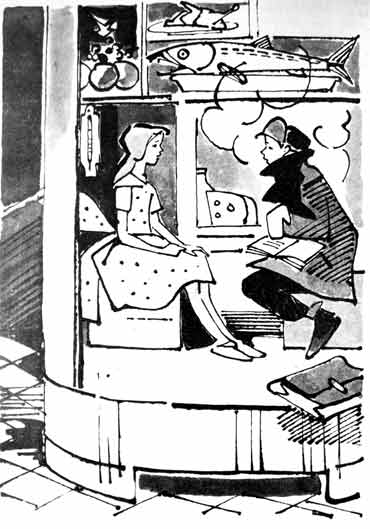 Они разговаривали. Петя рассказывал Настеньке о своих делах, а она ему — о своих. Он — о том, что у них злющая завуч и что, когда Настенька научится читать, он принесет ей «Таинственный остров», а она — что ей очень скучно. Холодильник зашумит, а ей кажется, что это ветер шумит. Ученые надоели, особенно один с синим носом, который все старается ковырнуть ее пальцем. Луны в холодильнике нет, а ведь говорят, что, кроме луны, есть еще и какое-то солнце? Правда, ученые говорят, что она должна бояться солнца, но ей все-таки хочется на него посмотреть.