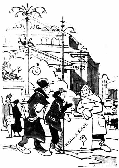 Что касается мороженщиц — не было ничего легче, как опросить их, если бы их не было так много. Они стояли на каждом углу и сердились, что мороженое зимой раскупается хуже, чем летом. Все, как одна, они были сердитые, и это до крайности затрудняло задачу. Их, конечно, тоже можно было понять: мало радости стоять в замерзшем, твердом фартуке на улице в лютый мороз и кричать как на смех: «А вот кому мороженого?» — когда и без мороженого ни у кого зуб не попадает на зуб.
