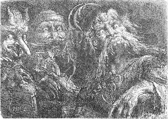 Говоря это, незнакомец подставил ему под нос пригоршню дукатов, блестевших как в огне. Волыночник был сын хорошей матери, он не мог не уступить сделанной таким образом просьбе и он последовал за чёрным человеком и его дукатами.