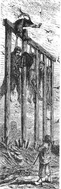 К утру один крестьянин, вёзший на поля навоз, приближаясь к перекрёстку, услышал звуки волынки. «Это, должно быть, Чванда», — сказал он и стал осматриваться, ища глазами самого гудочника. Наконец он увидел его, сидящего на краю виселицы и дующего изо всей силы в свою волынку, между тем как утренний ветер раскачивал трупы четырёх повешенных.
