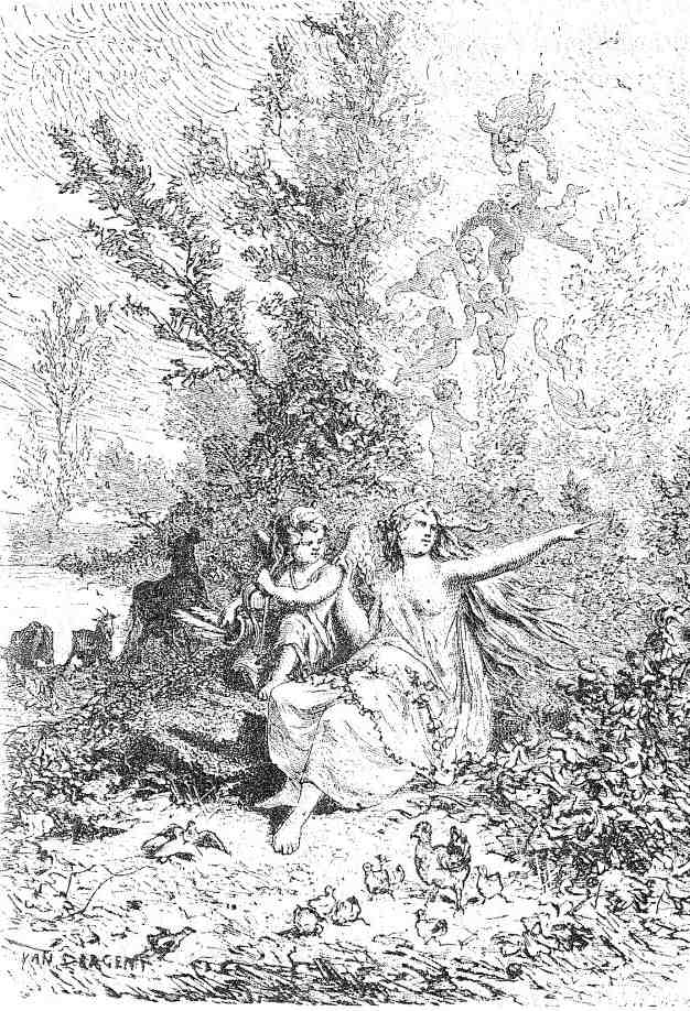 — Я ничего не могу сделать для тебя, дитя моё. Как видишь, я слепа и сама не знаю, что делаю. Вот эта прялка, которую я взяла наугад, должна соткать теперь жизнь тех, которые родятся в этот час. Я сама не знаю, что принесёт она новорождённым, — бедность ли, или богатство, счастье или несчастье. Я раба случая и ничего не могу сделать по своей воле. Обратись к моей сестре; может быть, она сумеет сделать для тебя что-нибудь.