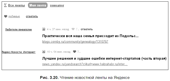 Большинство блог-хостингов умеют отдавать блоги в виде RSS-потоков, а робот Яндекса умеет эти потоки забирать и добавлять в Индекс. Первая задача, таким образом, решается автоматически. А вот вторую задачу — дать возможность подписаться на ваш RSS-поток, включить его в состав ленты, можно решать по-разному. Можно опубликовать адрес вашего потока, а можно разместить на своем сайте или блоге специальную кнопку от Яндекса (листинг 3.8), и тогда посетители смогут легко добавить ваш блог в свою личную ленту.