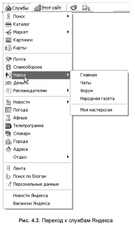 Если вы внимательно прочитали описание инструментальной панели, то можете сопоставить ее кнопки и перечисленные модули. За исключением первого — Менеджера подсветки. Этот модуль помогает работать с документами, найденными поисковыми системами Яндекса, — http://www.yandex.ru, http://ya.ru, а также с программами персонального поиска — Яndex.Siteи Яndex.CD. Суть работы модуля заключается в том, что происходит обработка найденных документов, при которой в них выделяются — подсвечиваются — слова из поискового запроса (рис. 4.4).