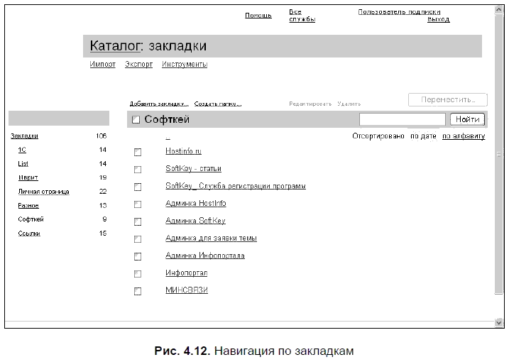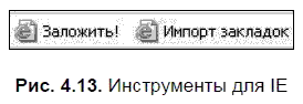 А знаете ли вы, что, кроме работы с закладками в рамках вашего персонального сервиса, закладки могут предложить вам дополнительные инструменты (рис. 4.13), легко размещаемые на панели ссылок вашего браузера? Таких инструментов два:
