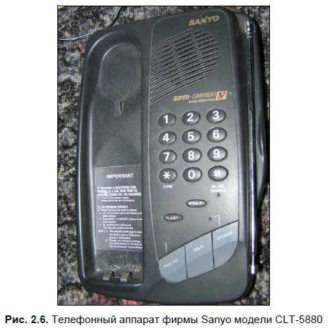 Для тех радиолюбителей, у кого сохранились и без дела лежат телефонные аппараты с встроенной функцией громкой связи, будет полезна эта простая доработка. Такими встроенными системами обладают многие телефонные аппараты, в том числе зарубежного производства, например, радиотелефон Sanyo CLT-5880, представленный на рис. 2.6.