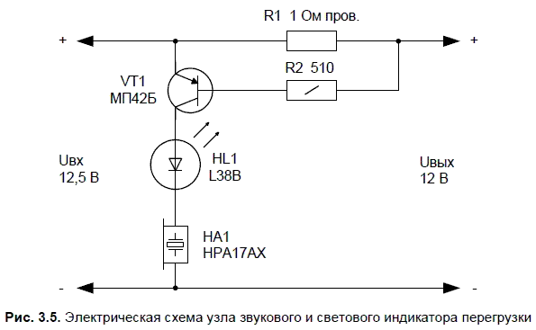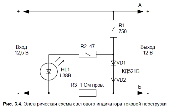 Самая простая электронная схема индикатора токовой перегрузки показана на рис. 3.4.