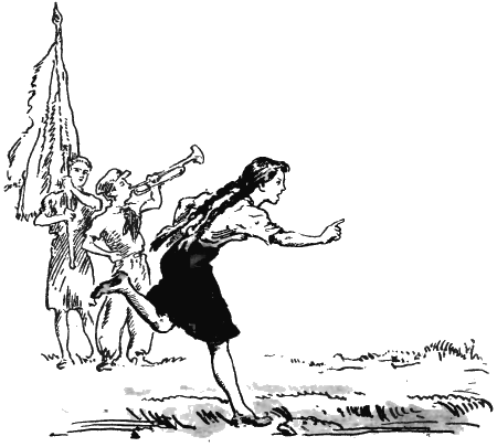 Их пятый отряд был на почётном месте сразу за горнистами, барабанщиками и знаменосцами, нёсшими впереди отрядные знамёна и знамя пионерской дружины, красивое, алого бархата, с золотыми кистями и золотой бахромой.