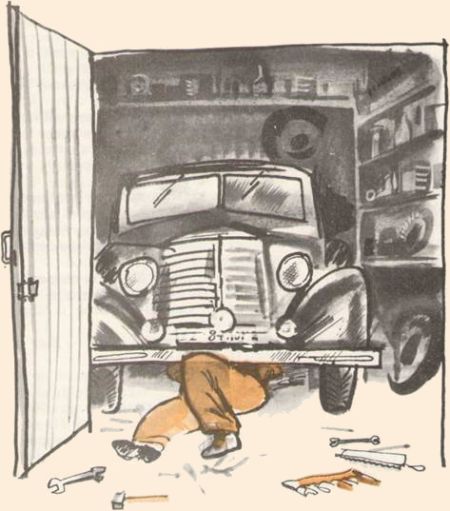 — Вы знаете, ребята, — продолжал папа из-под машины, — один знаменитый француз сказал: «Хороший автомобиль только тот, в котором можно сидеть, не снимая цилиндра». А в современную машину чтобы залезть, наголо стричься надо. Не то что в цилиндре.