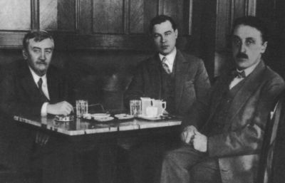 Слева направо: А. И. Куприн, неизвестный, Б. К. Зайцев.